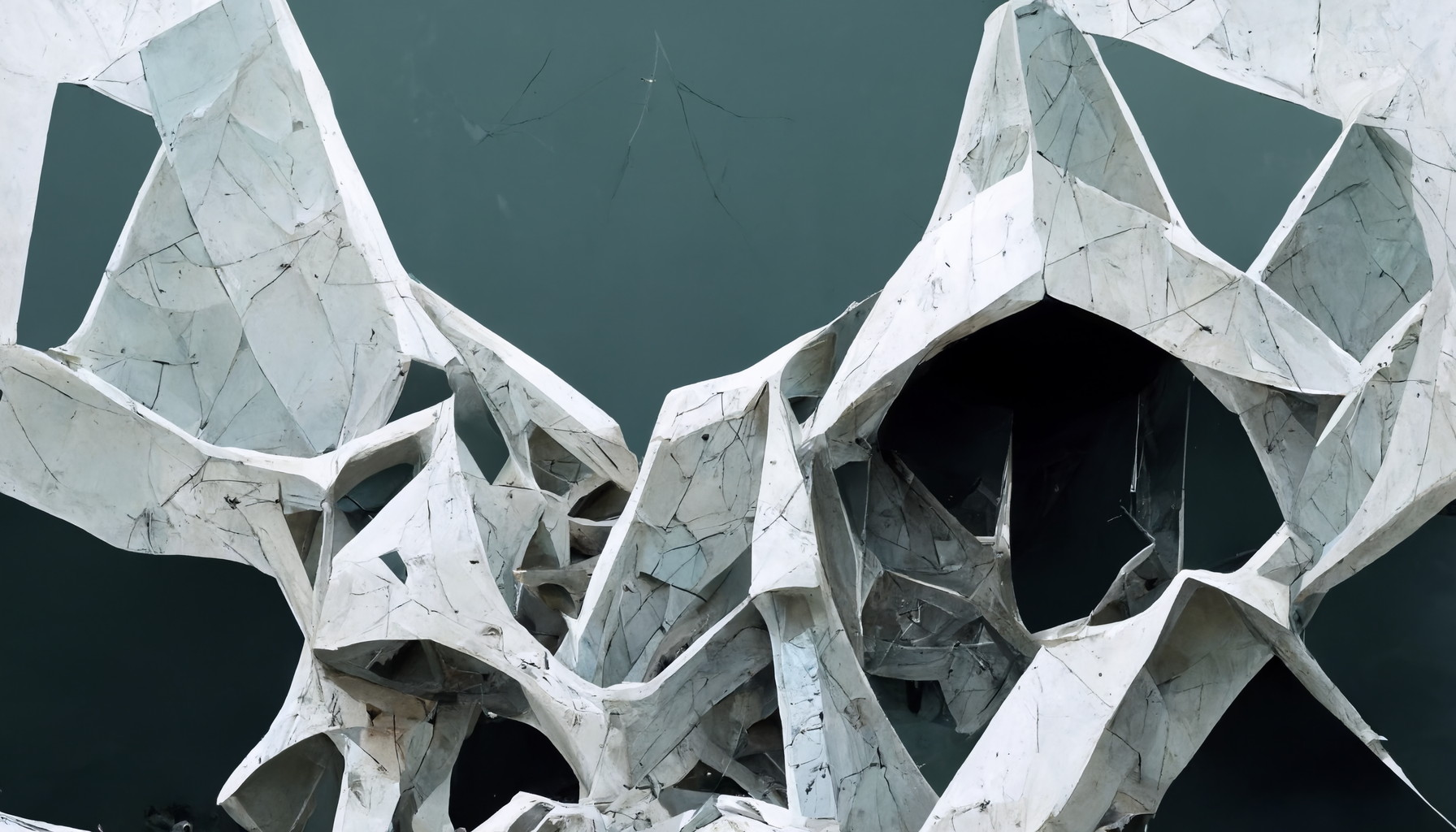 To obtain more triangular and sharper shapes, one word has been handy. I often asked the AI to generate forms looking like “the broken part of a F117”, yes the 90s super angular stealth fighter, which allowed me to inject this weird reference into the generation.