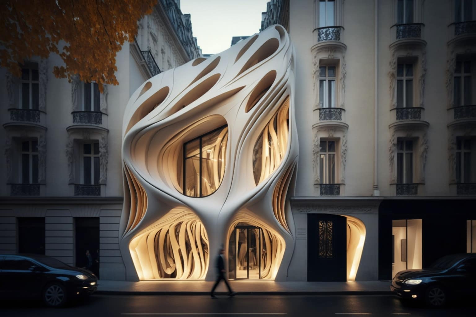 3D printing allows for optimized material use by depositing material only where it is needed. This reduces waste and could significantly lower the carbon footprint of the renovation process.