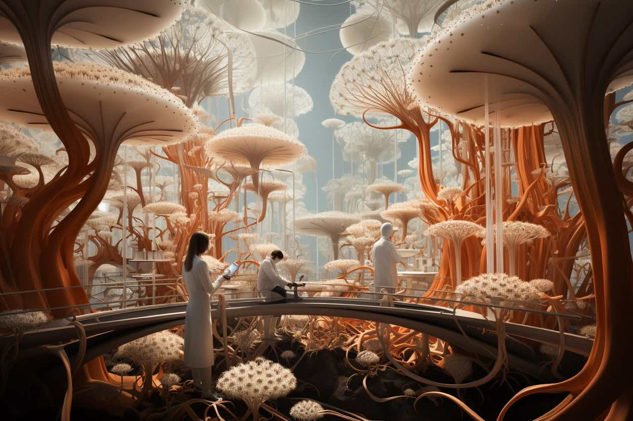 A visual exploration at the intersection of research labs, mycorrhizal networks, biomaterials and bioluminescence.